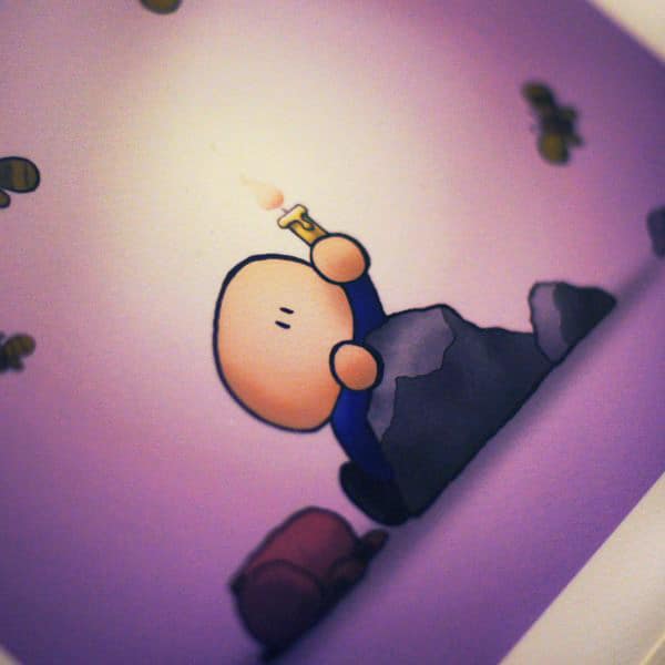 An Explorer is lost inside deep, dark caves and cannot see a way out of the blackness that surrounds him.